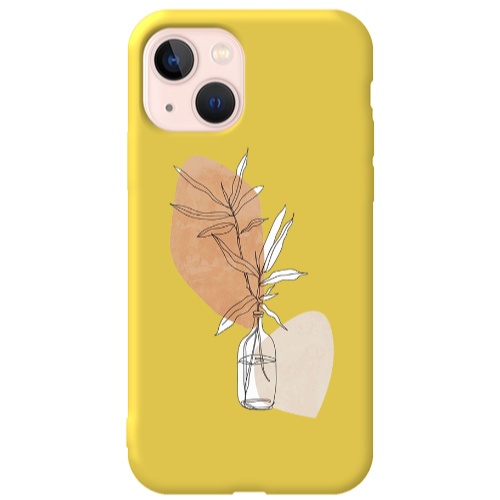 Apple iPhone 13 Vazo Line Sarı Renkli Silikon Telefon Kılıfı
