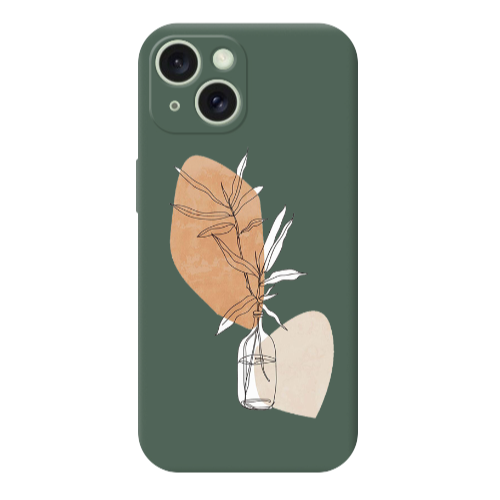 Apple iPhone 15 Vazo Line Koyu Yeşil Renkli Silikon Telefon Kılıfı