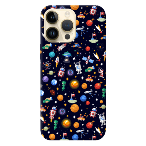Apple iPhone 13 Pro Max Vektörel Gezegenler Lila Renkli Silikon Telefon Kılıfı