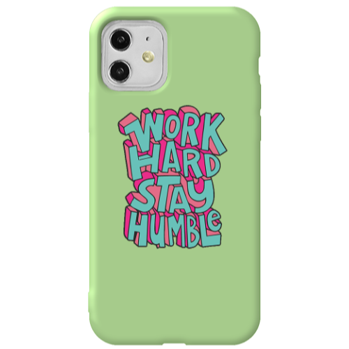 Apple iPhone 11 Work Hard Stay Humble Açık Yeşil Renkli Silikon Telefon Kılıfı