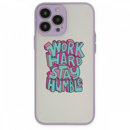 Apple iPhone 14 Pro Max Work Hard Stay Humble Lila Hux Telefon Kılıfı