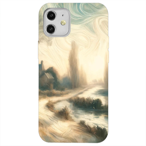 Apple iPhone 12 Yağlı Sanat Lila Renkli Silikon Telefon Kılıfı
