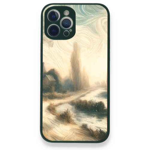 Apple iPhone 12 Pro Yağlı Sanat Koyu Yeşil Hux Telefon Kılıfı