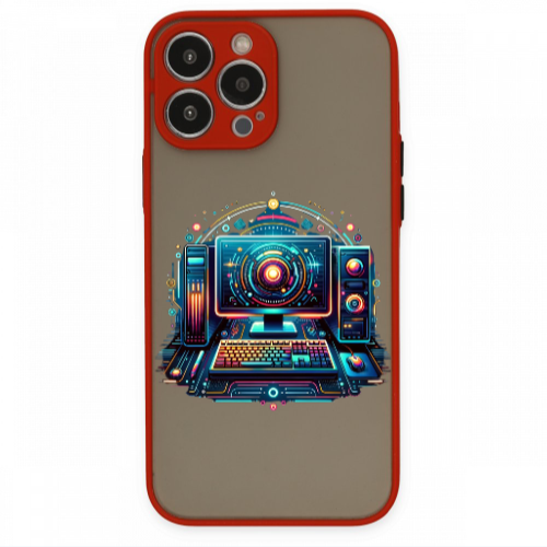 Apple iPhone 13 Pro Yapay Bilgisayar Kırmızı Hux Telefon Kılıfı