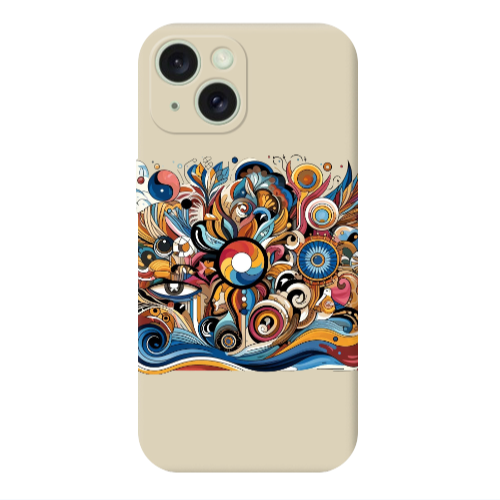 Apple iPhone 15 Plus Yapay Gözler Krem Renkli Silikon Telefon Kılıfı