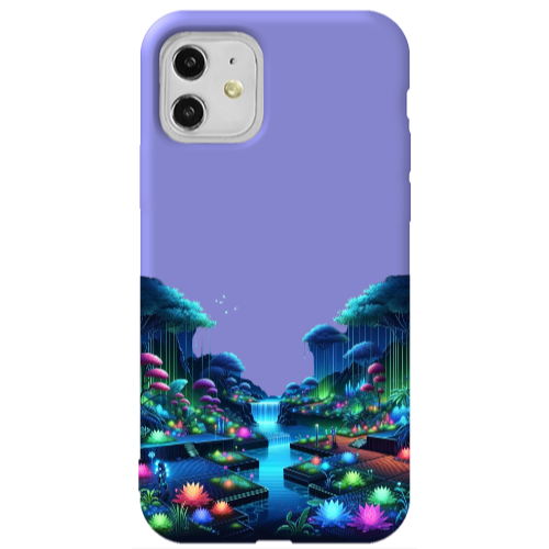 Apple iPhone 11 Yapay Manzara Lila Renkli Silikon Telefon Kılıfı