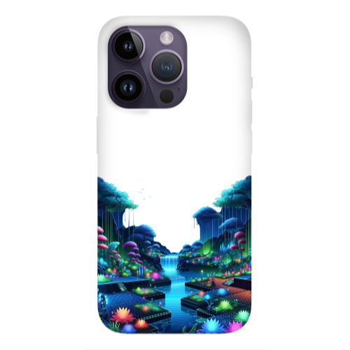 Apple iPhone 14 Pro Max Yapay Manzara Beyaz Renkli Silikon Telefon Kılıfı