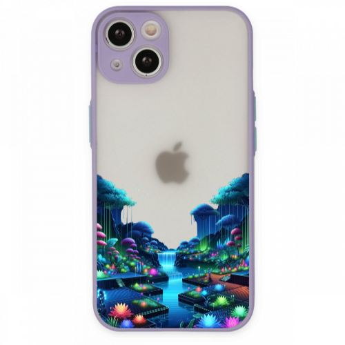 Apple iPhone 13 Mini Yapay Manzara Lila Hux Telefon Kılıfı