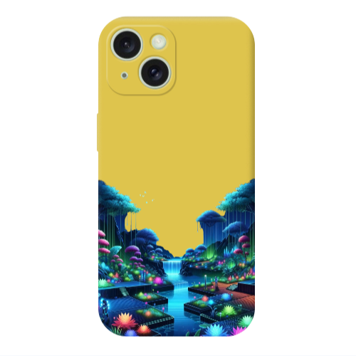 Apple iPhone 15 Yapay Manzara Sarı Renkli Silikon Telefon Kılıfı