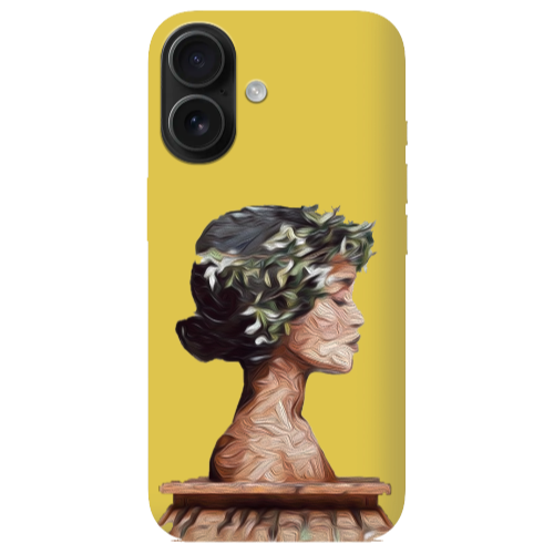 Apple iPhone 16 Yaprak Kadın Sarı Renkli Silikon Telefon Kılıfı