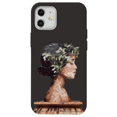 Apple iPhone 12 Yaprak Kadın Siyah Renkli Silikon Telefon Kılıfı
