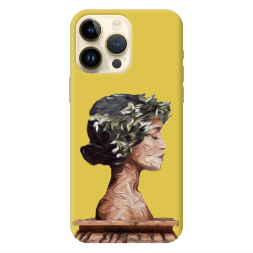 Apple iPhone 13 Pro Max Yaprak Kadın Sarı Renkli Silikon Telefon Kılıfı