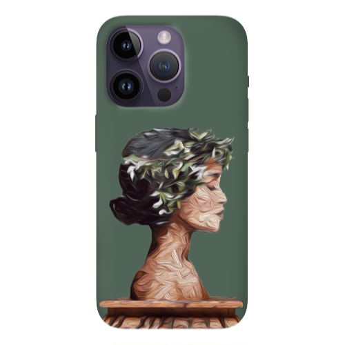 Apple iPhone 14 Pro Yaprak Kadın Koyu Yeşil Renkli Silikon Telefon Kılıfı