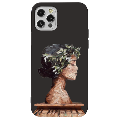 Apple iPhone 12 Pro Yaprak Kadın Siyah Renkli Silikon Telefon Kılıfı