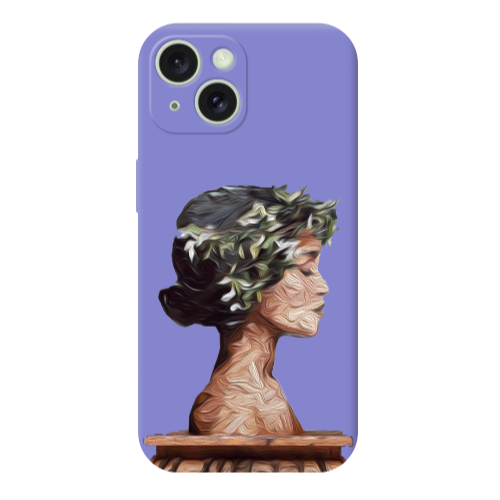 Apple iPhone 15 Yaprak Kadın Lila Renkli Silikon Telefon Kılıfı
