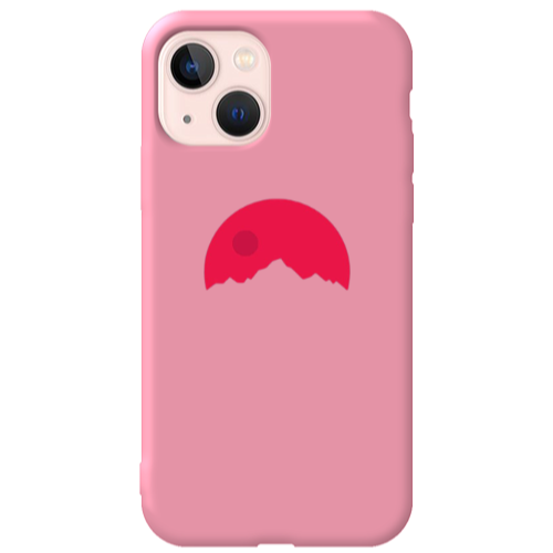 Apple iPhone 13 Mini Yarım Kırmızı Pembe Renkli Silikon Telefon Kılıfı