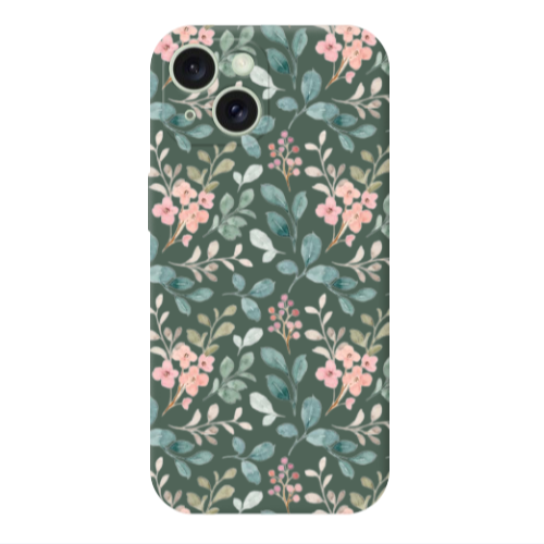 Apple iPhone 15 Yeşil Pembe2 Koyu Yeşil Renkli Silikon Telefon Kılıfı