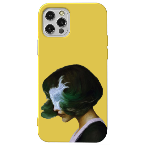 Apple iPhone 12 Pro Max Yeşil Saç Sarı Renkli Silikon Telefon Kılıfı