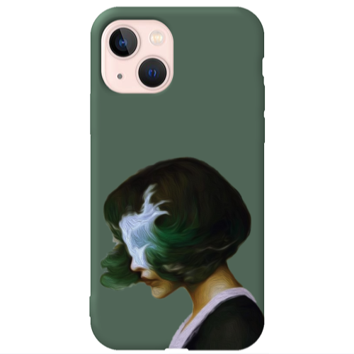 Apple iPhone 13 Mini Yeşil Saç Koyu Yeşil Renkli Silikon Telefon Kılıfı