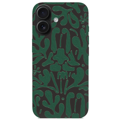 Apple iPhone 16 Yeşillik Siyah Renkli Silikon Telefon Kılıfı