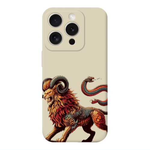Apple iPhone 15 Pro Yılan Aslan Krem Renkli Silikon Telefon Kılıfı